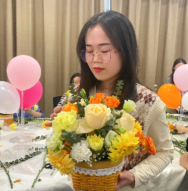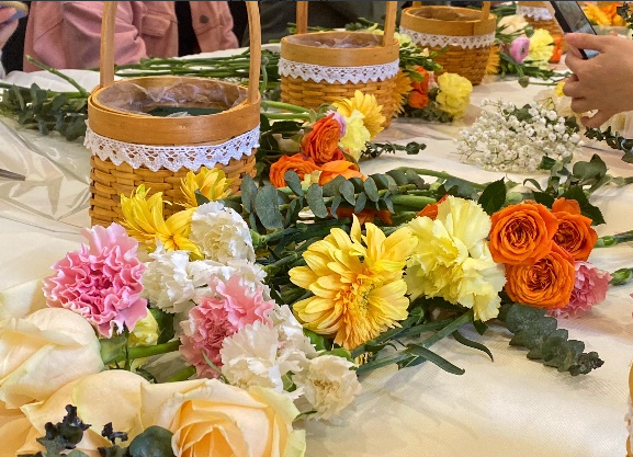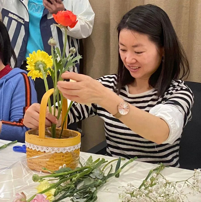 活动当天,大家陆续入座,精心准备的花材和工具已经摆放整齐。公司请来专业的花艺老师为大家进行现场花艺教学。她通过生动形象的讲解和实际演示,带大家了解了各类有趣的花材,并从插花造型、色彩搭配介绍了基本的花艺技巧。