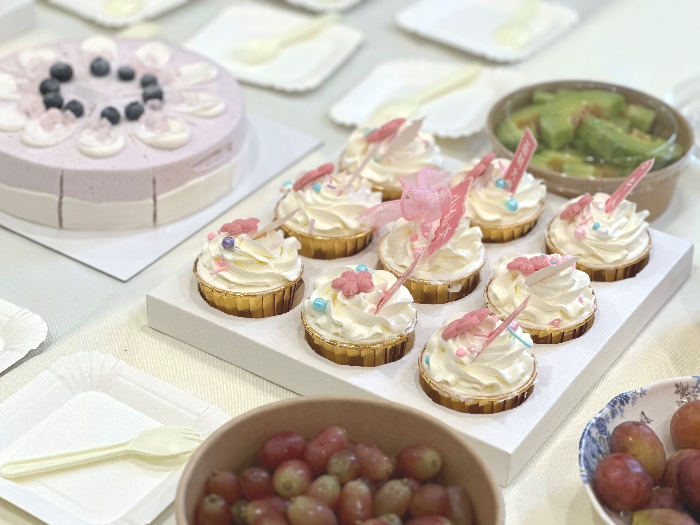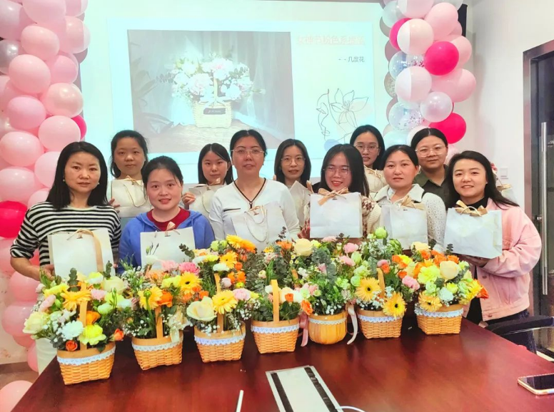 随后的下午茶时间,大家共同分享着美味的蛋糕和水果,相互交流着插花的体验和感受,尽情享受着花艺和美食之美。现场洋溢着欢乐和温馨,笑声和欢声不断,热闹非凡。活动在轻松愉快的氛围中结束,公司为女职员们送上节日礼物并合影留念。